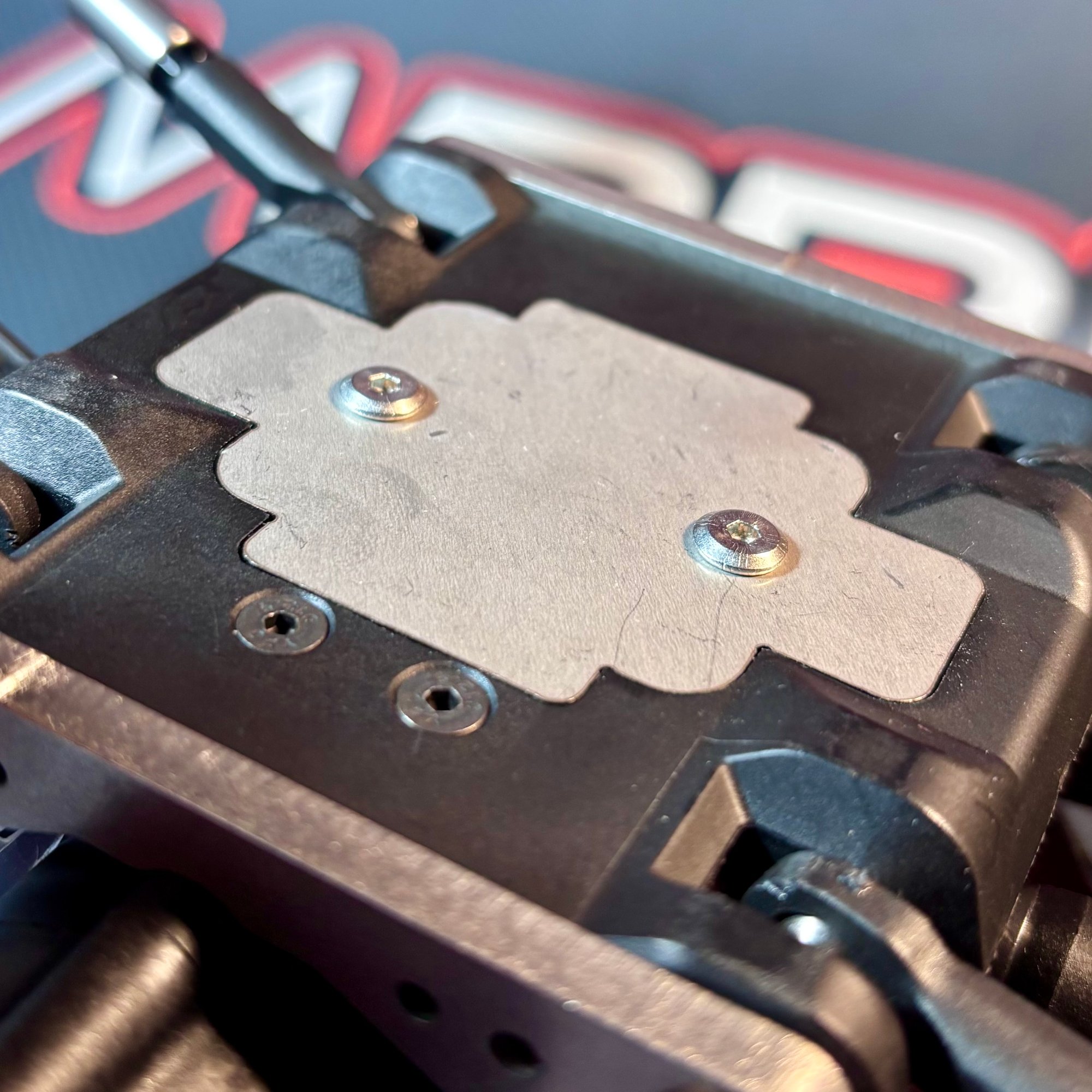 Add weight to the bottom of your LMT 1 or 2.0 kits with our stainless steel gear box weighted insert and cover set. Lowers center of gravity and increases weight ratio between sprung chassis and unsprung axle weight aiding in overall handling performance. Approximately 45g. Warning! This set has not been tested with aftermarket aluminum parts and may not fit them.