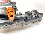 2. Another tip is to space the servo 2.5mm forward and run the drag link on the back side of the servo horn (see photos). We do this with all of our trucks when using the Treal Servo Saver or similar savers with the far offset servo arms. This method straightens out the link at full throw and gives the arc a better geometry. We have a Carbon Fiber Servo Spacer available in the shop just for this purpose.